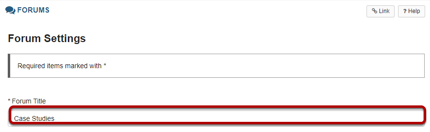 Forum titles are required. Name the forum a title to easily identify the types of topics expected within it. Remember that users post messages within topics, not forums. Forums are a grouping or classification of topics.