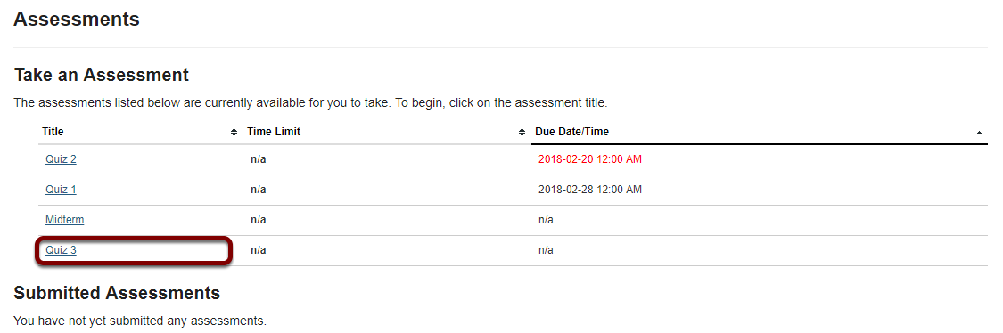 You can preview an assessment either by using the Preview option in the Action menu, or by viewing the site as a student and submitting the assessment.
